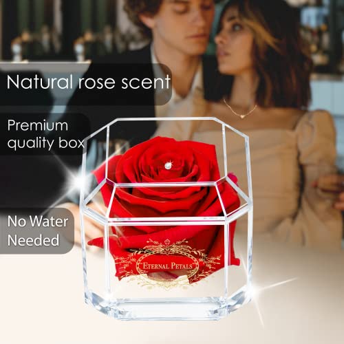 ✮ TRENDY BOX – Arrivando in questa splendida scatola di diamanti acrilici 8 cm x 8 cm x 8 cm con un logo oro Eternal Petals con un cristallo Swarvoski trasparente, troverai una vera rosa perfettamente fiorita in un colore davvero bello. Il massimo del romanticismo classico, questa rosa sfida la natura con il suo sorprendente pigmento magico, che puoi godere e ammirare per anni