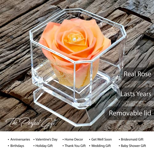 ✮ TRENDY BOX – Arrivando in questa splendida scatola di diamanti acrilici 8 cm x 8 cm x 8 cm con un logo oro Eternal Petals con un cristallo Swarvoski trasparente, troverai una vera rosa perfettamente fiorita in un colore davvero bello. Il massimo del romanticismo classico, questa rosa sfida la natura con il suo sorprendente pigmento magico, che puoi godere e ammirare per anni